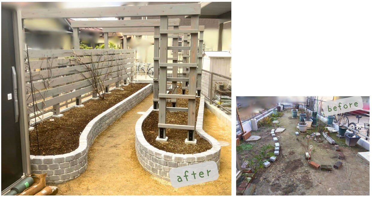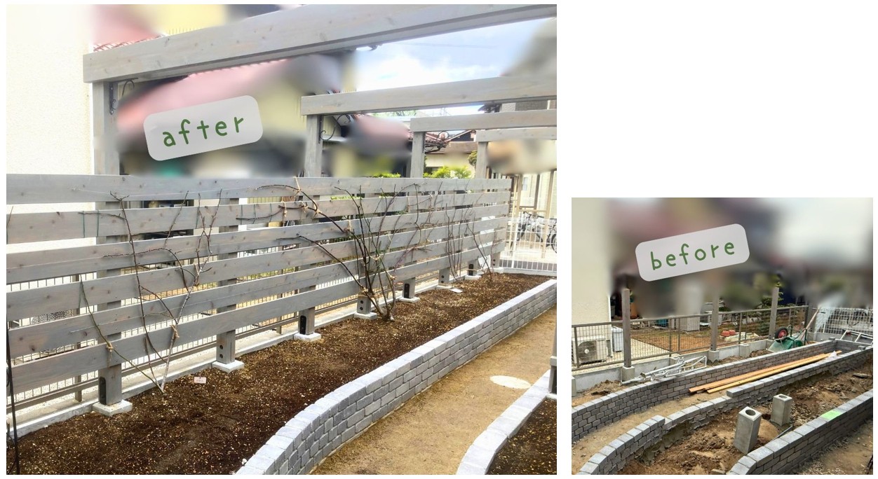 施工実績 バラが彩るプライベートガーデン 庭まわりクローズドスタイル洋風フェンスレンガ天然木植栽 2025/09/23 土のままだったお庭に横板の目隠しフェンスとレンガ縁の花壇を新設。 バラが立体的に咲き誇る癒しの空間が誕生しました。 花壇にはオリジナルのパーゴラを設置し、隣地側にはプライバシーに配慮した目隠しフェンスを設けました。 目隠しフェンスやパーゴラの柱にバラを誘引しました。 バラがの季節が楽しみなプライベートガーデンの完成です。 施工事例一覧に戻る