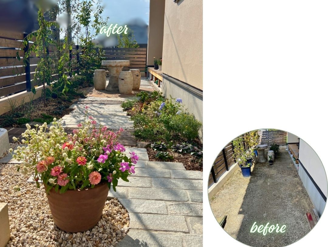 既存の目隠しフェンスとのバランスも良く、プライベート感がアップしました。