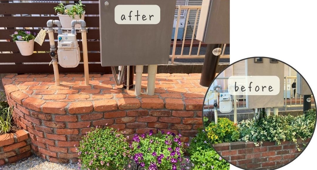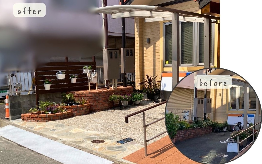 シンプルだった駐輪場を、景観も楽しめるスペースにリガーデンしました。